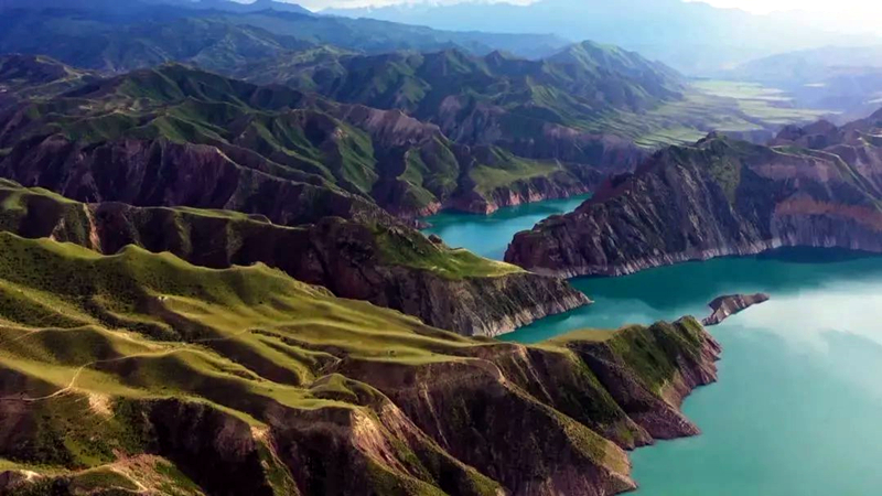 仿佛一块碧玉镶嵌在群山峡谷间