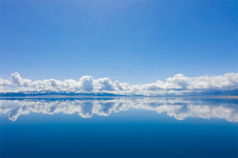 远处的雪山、临近的蓝湖、身畔的花海