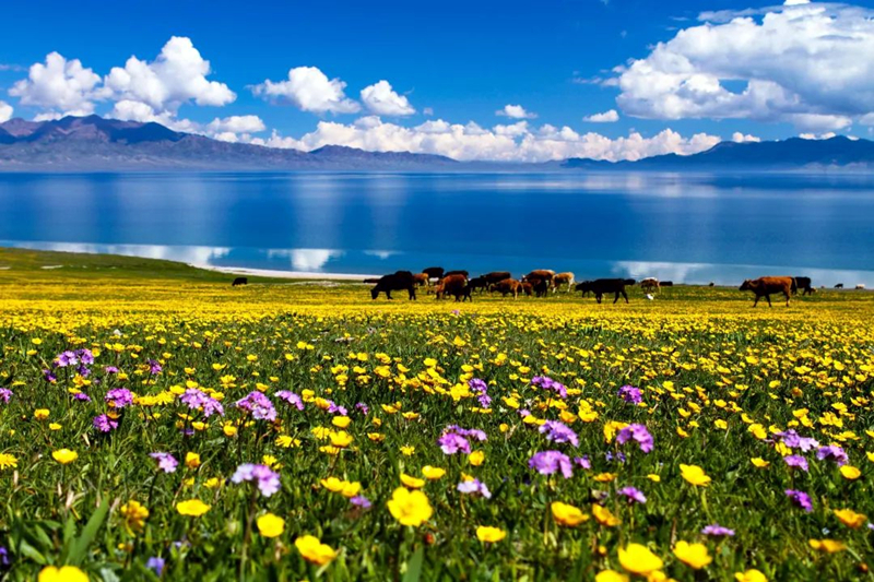 这里有沙漠、绿洲、草原、雪山、湖泊等自然风光,环湖品味赛里木湖好风光,还可以在夏尔西里体验云卷云舒慢时光,看看生活在温泉县的新疆北鲵是与恐龙同时代物种的“活化石”,各种风景在这片土地上煜煜生辉。