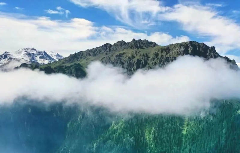 连日来的雨雪为天山天池披上了神秘的面纱!