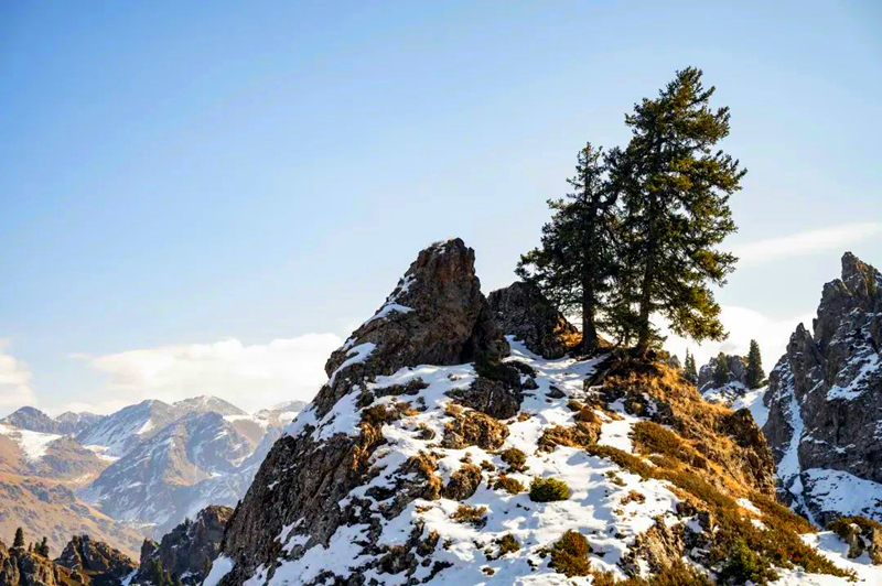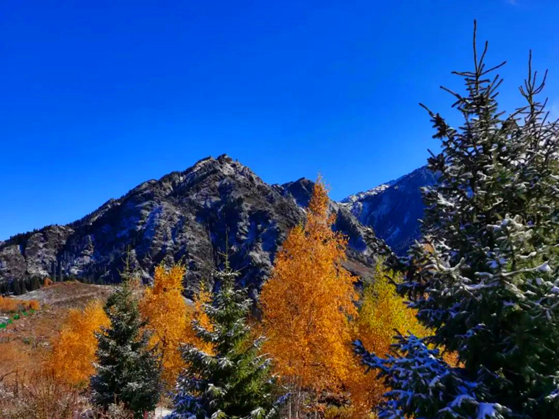 或与秋日最后的斑斓相交相融,一派北国秋日雪染万物之风采。