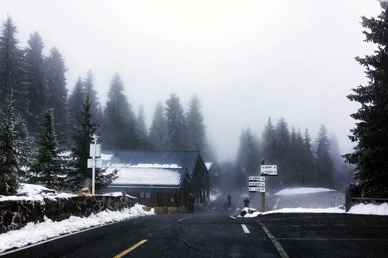 晚秋时,天山天池的初雪,总会在不经意的某个时刻悄悄光临。将山水树木渲染成一幅墨色画卷,沉浸在时光里......