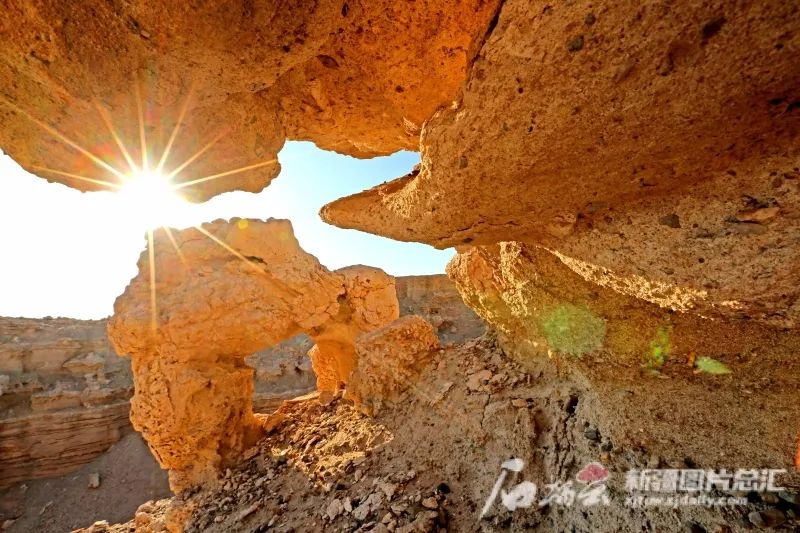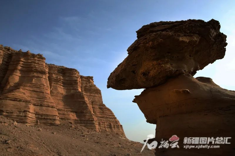 亿万年前,新疆所在地区还是一片汪洋。随着气候的变化,水进水退,反反复复,产生了上下叠加的泥岩层和沙土层。风和流水带走疏松的沙土层,温差剧烈变化产生的胀缩效应导致泥岩层发生断裂,逐渐演变为沟槽状,雅丹地貌由此逐渐被塑造出来。