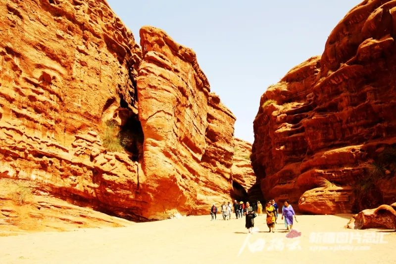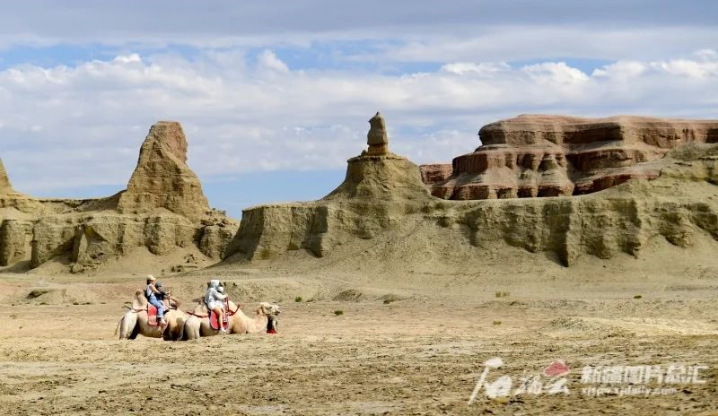 7月22日,游客在位于克拉玛依市乌尔禾区的世界魔鬼城景区游玩。石榴云/新疆日报记者 韩亮 摄