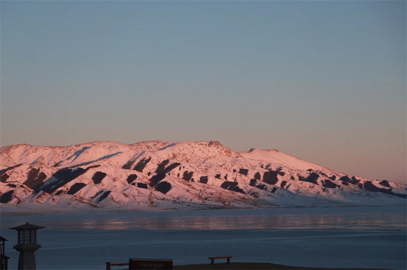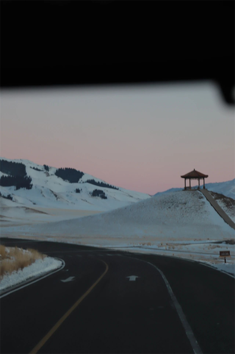 赛里木湖冬季的日出较晚,9:00才渐渐天亮。如果要拍日出延时,就要9:00之前开拍;只看日照金山,9:30左右到就行。拍摄位置可以在松树头和网红S弯。
