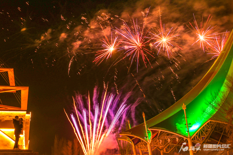 春节期间乌尔禾区的烟火秀。 闵勇摄