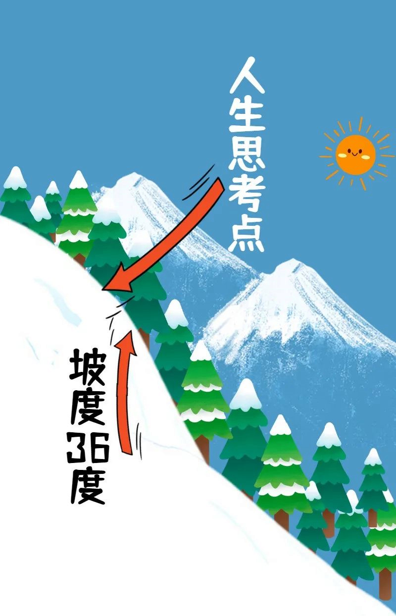 面对悬崖一般的36度大陡坡,无数雪友在这个点位停下滑板,进退两难、追悔莫及、欲哭无泪、举棋难定……开始了漫长的人生思考,只有真正克服内心的恐惧,才能迈出步伐,滑出最勇敢的自己。