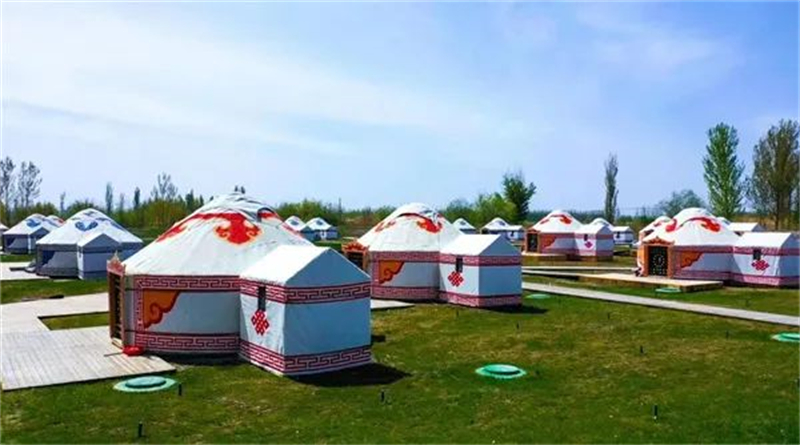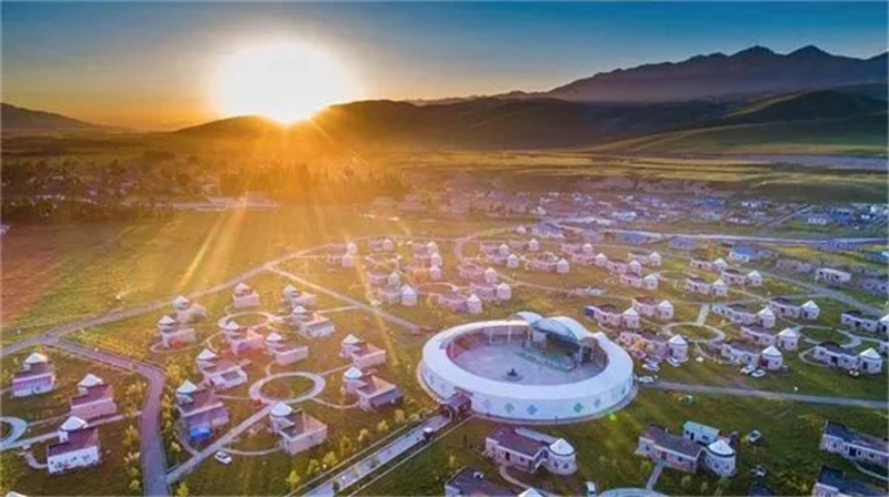 西海部落:是以东归文化为主题的民宿,展现蒙古族毡房、田园牧歌、民俗文化等元素,设置民宿体验区、非遗展示区、东归餐饮区、非遗商品展示等区域,以及酒吧、烧烤区、篝火晚会等休闲体验项目,为游客带来一场近距离体验游牧生活和感受东归文化的休闲度假旅游。