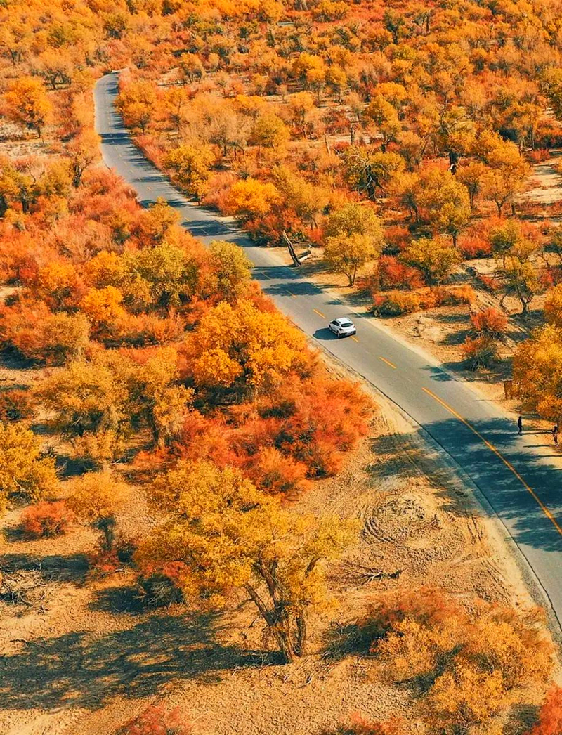 乘车线路:在库尔勒客运站买去往轮台县的大巴车票,60元/人,约3个小时到达,再在轮台客运站买线路车票,即可前往塔里木胡杨林国家森林公园。