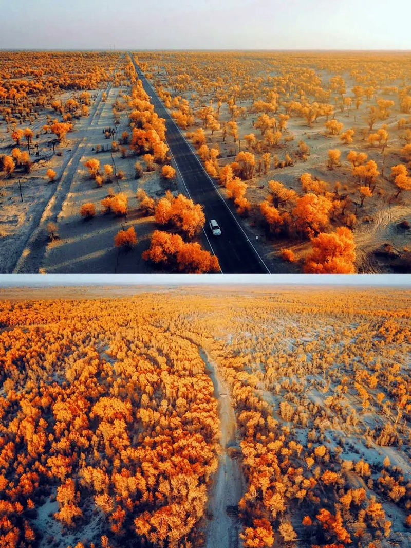 推荐打卡点:胡杨雕塑园、胡杨林公园、沙漠公路、仓头古城遗址
