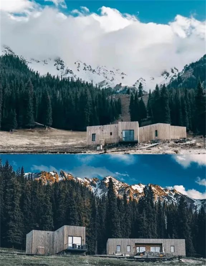 多幢别墅木屋错落有致地镶嵌在松林山畔