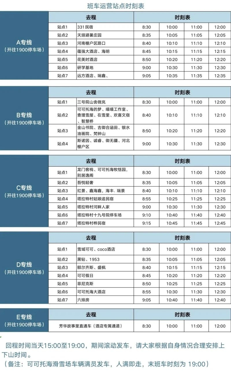 10月6日可可托海国际滑雪度假区发布最新公告,自10月8日起调整摆渡车运行时间,具体调整如下: