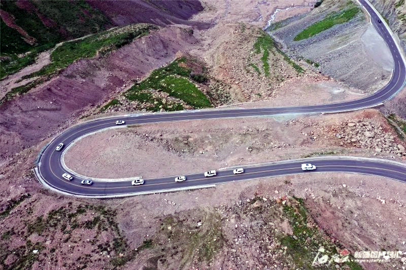 独库公路乔尔玛以北部分高山路段(2021年7月17日无人机拍摄)。胡维斌摄