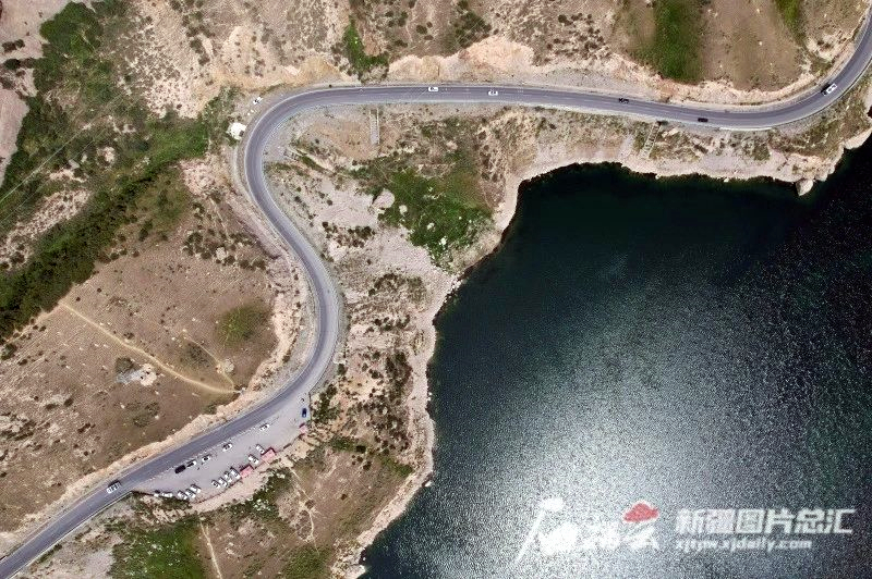 俯瞰独库公路和大龙池(资料图片)。石榴云/新疆日报记者邹懿摄