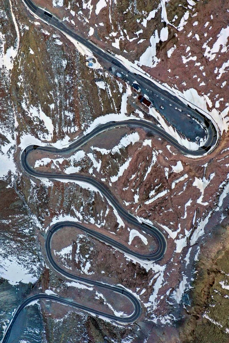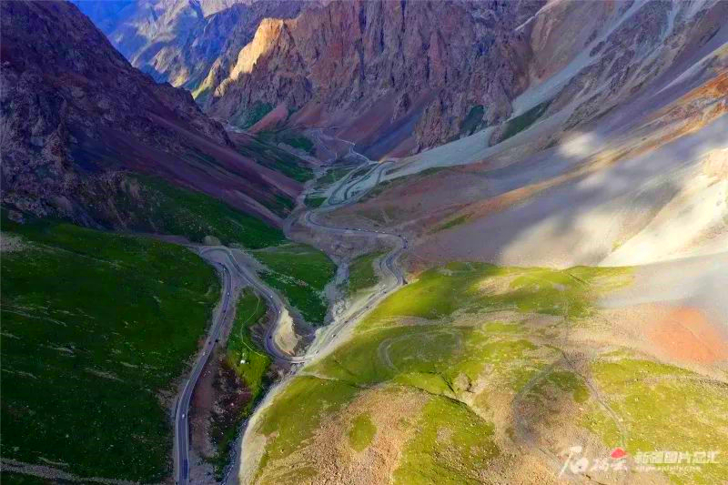 独库公路上的盘山道(无人机照片)。新华社记者胡虎虎摄