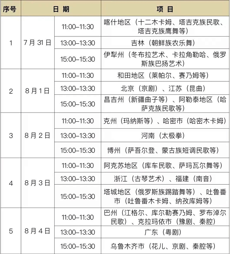 2022“新疆是个好地方”对口援疆19省市非物质文化遗产展“乐舞非遗”日程安排