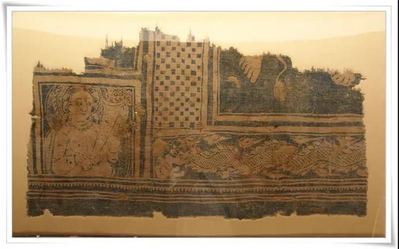 其实,早在1959年,新疆考古工作者在和田地区民丰县尼雅遗址发现了一座东汉晚期的墓葬,墓中出土了蓝白印花棉布、人物印花棉布和一些原白色棉布的残片,这也是我国目前所知的最早的棉布。其中的人物印花棉布中心部分已经缺失,只能见到半只脚和一段狮尾。左下角有一个32厘米见方的方框,框内画有一个半身女神像。女神高鼻深目,胸怀袒露,颈佩璎珞,臂饰环,手持盛满了果实的丰饶角。从人像项饰璎珞以及和身后有顶光和背光这一特征来看,此蜡染布的产地可能为键陀罗,是印度佛教艺术影响下的产物,因此早期西域蜡缬技术来源于印度的可能性比较大。