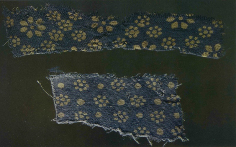 同年,新疆博物馆李遇春先生带队发掘了于田县屋于来克古城遗址,出土了许多珍贵的文物,其中包括在北朝墓葬中出土的制造比较紧密的“褡裢布”和1块长11厘米、宽7厘米的蓝白印花布。这些遗物的发现,表明北朝时期于田一带已出现了植棉与棉织物。