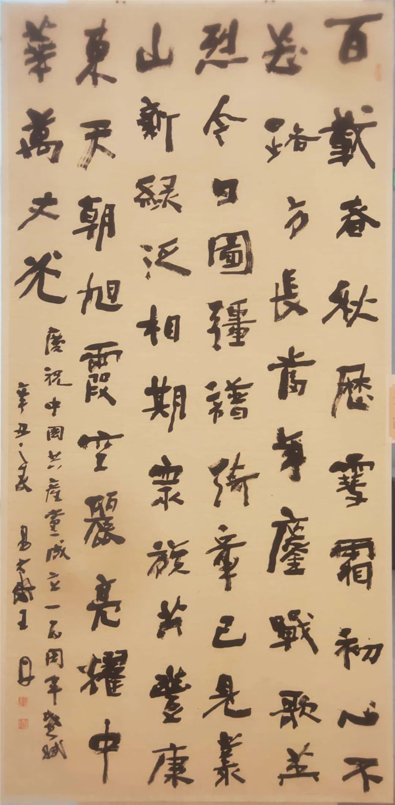 翰墨文词抒豪情,治疆大业起新程。“雨润天山——第十批援疆庆祝建党100周年主题书法展”在新疆图书馆正式开展。同时,开启书法展线上展播。本次展览分为中央单位、19个对口援疆省市、新疆维吾尔自治区和生产建设兵团三大板块,共展出书法作品320余幅,“红色印记”“援疆足迹”和书法作品交相辉映、内涵丰富。
