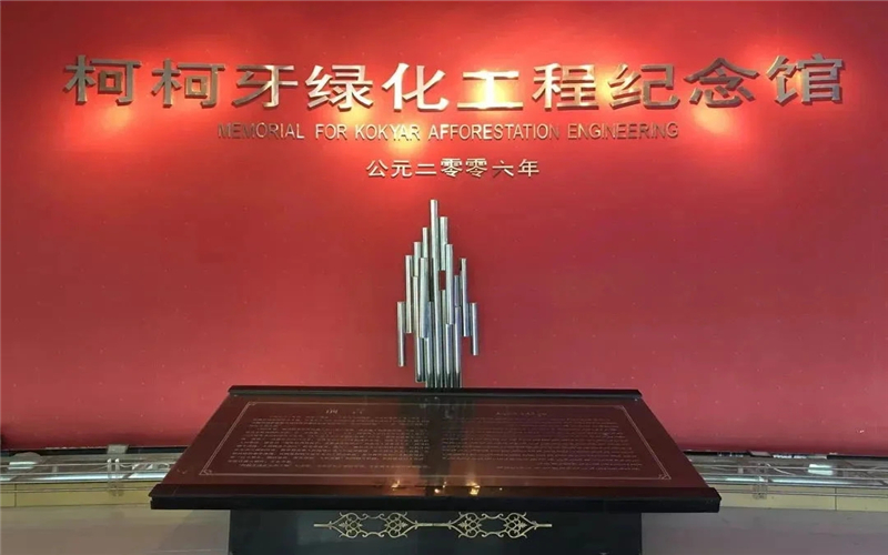 柯柯牙绿化工程纪念馆是新疆首家生态文明建设纪念馆,整个纪念馆由序厅、荒漠之殇、创业之艰、奋进之旅、胜利之果、未来之路六个篇章组成。以图片、文字、影像等形式展示“柯柯牙精神”、持续推进生态治理工程建设以及在植树造林、生态修复、生态植被恢复、公园城市建设等方面取得的成果。