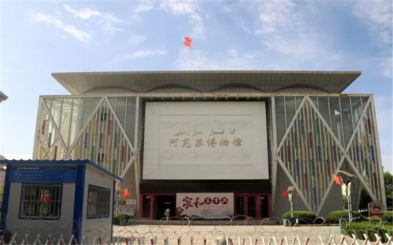 阿克苏博物馆是阿克苏地区有史以来建设的第一个综合性博物馆,也是南疆重镇阿克苏新兴文化产业的标志性文化建筑。它坐落于阿克苏市西广场,外观为红、黄、蓝、绿色块相间的钢结构建筑。展陈形式包括龟兹历史文化厅、多浪民俗文化厅、新疆古代货币厅三个常设陈列和一个临时展厅。是一座集历史、艺术、民俗、自然为一体,展现“龟兹文化”“多浪文化”特色,反映阿克苏深厚历史文化底蕴的综合性博物馆。