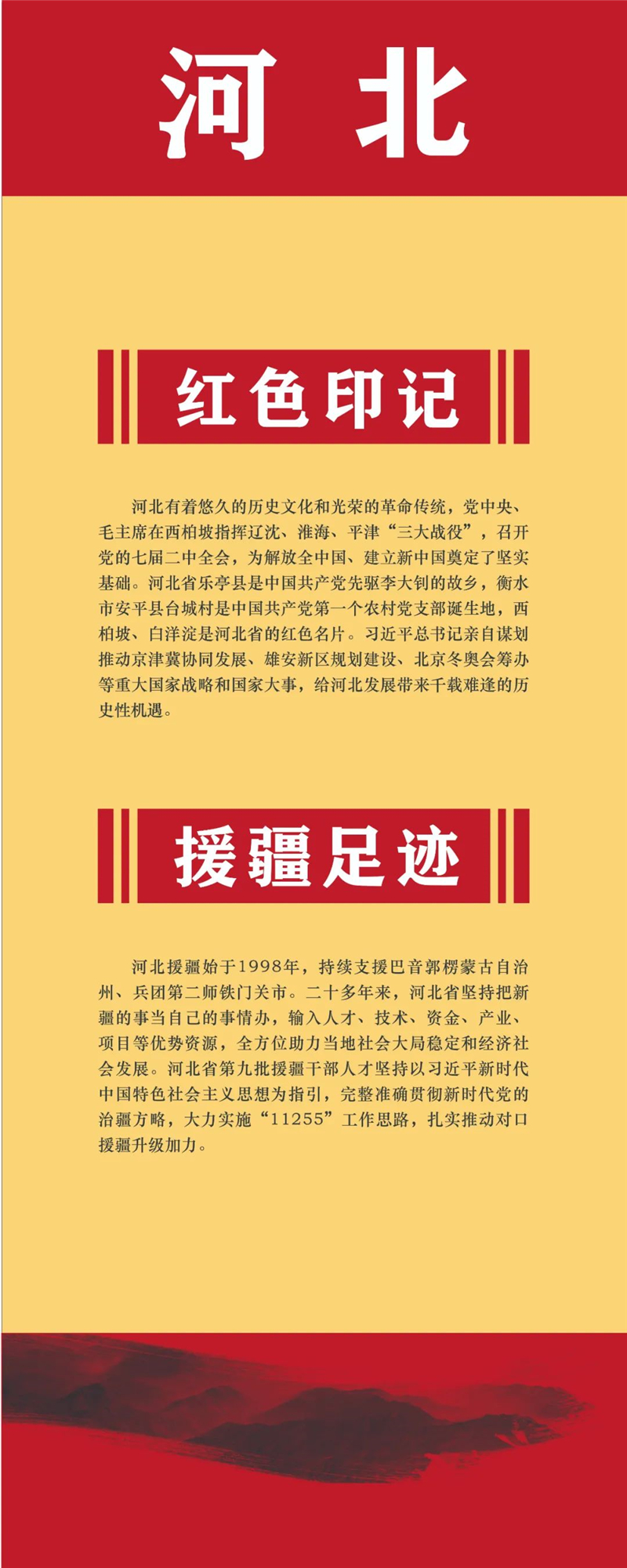 让我们一起品鉴艺术芬芳,感悟时代召唤,进一步凝聚起勇担新使命、奋进新征程的磅礴伟力,为建设团结和谐、繁荣富裕、安居乐业、生态良好的新时代中国特色社会主义新疆贡献智慧和力量!现在就让我们一同走进线上展览的第四篇章——河北。