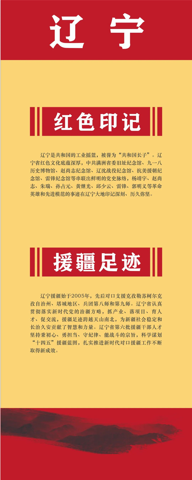 让我们一起品鉴艺术芬芳,感悟时代召唤,进一步凝聚起勇担新使命、奋进新征程的磅礴伟力,为建设团结和谐、繁荣富裕、安居乐业、生态良好的新时代中国特色社会主义新疆贡献智慧和力量!现在就让我们一同走进线上展览的第六篇章——辽宁。