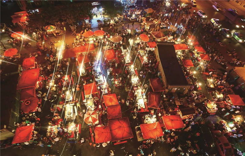 喀什古城罕巴扎夜市热闹非凡 王振贵摄