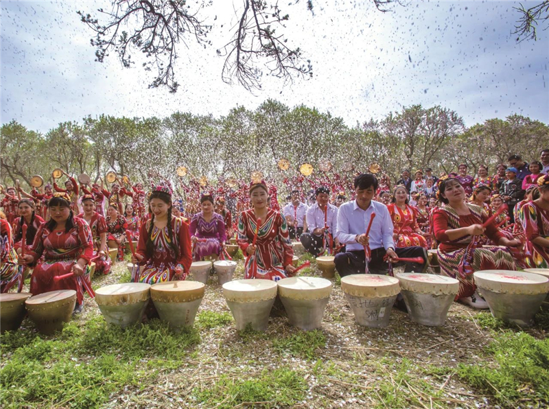 莎车县巴旦木(巴旦姆)林下“那格拉”鼓乐表演 高嵩摄