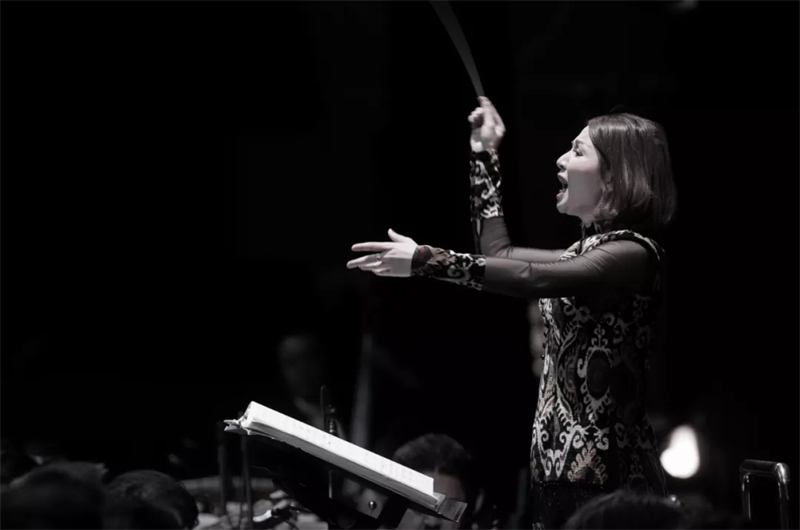 即使看背影,也能感受到指挥的力量。随着她手中“魔法棒”的起承转合,音乐时而高亢,时而低缓。到了激昂的部分,她也沉醉其中跟着旋律一起摆动,直至秀发飘散,整个人几乎要“飞”进音乐里。