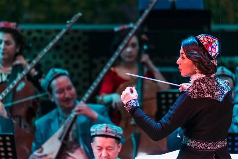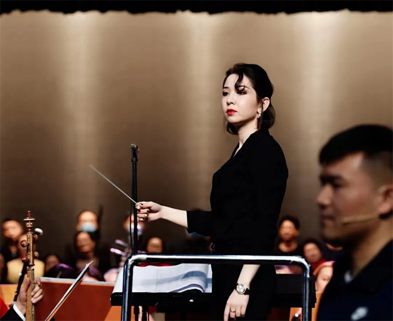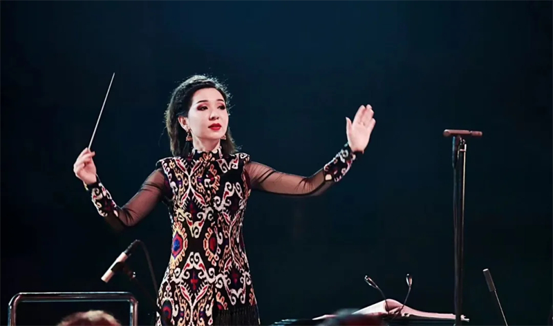 今年9月份,新疆首部民族管弦乐清唱剧《葡萄熟了》在自治区文化馆盛大开演。舞台上,一个背对着观众,身着民族风旗袍、手持指挥棒的纤细身影,引起了很多人的注意。