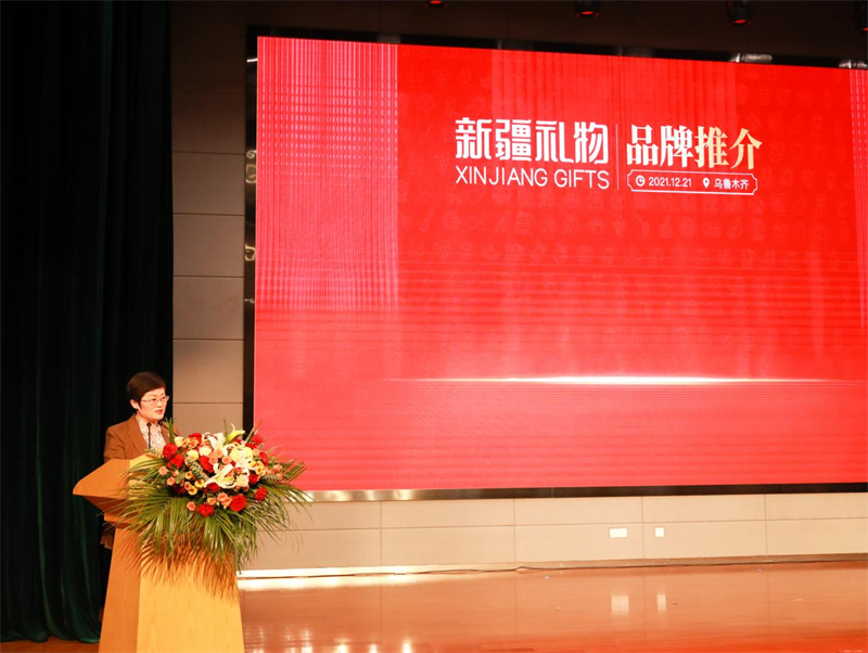 ▲ “新疆礼物”视觉形象设计为本次大赛的专项赛内容,新疆文化旅游投资集团有限公司副总经理李翠荣在启动仪式上介绍了“新疆礼物”品牌建设情况,并现场发布了新疆礼物企业名录。