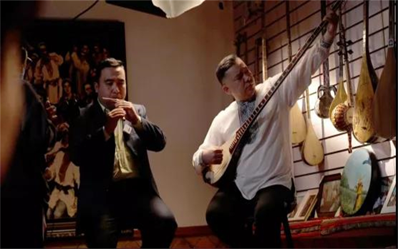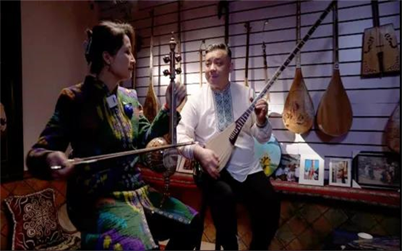 直播间网友纷纷互动,表现出对新疆乐器的浓厚兴趣,在与观众的点歌互动中,艺术家们现场演奏了《一杯美酒》、《牡丹汗》等经典歌曲。在悠长曼妙的乐曲声中,大家走进艺术家的生活,从旋律声中感悟新疆的民俗文化。
