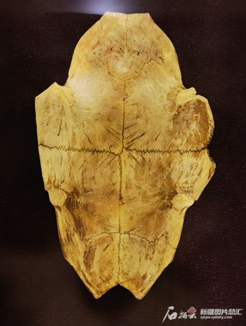 经过修复师拼接还原的龟腹甲。石榴云/新疆日报记者 银璐摄