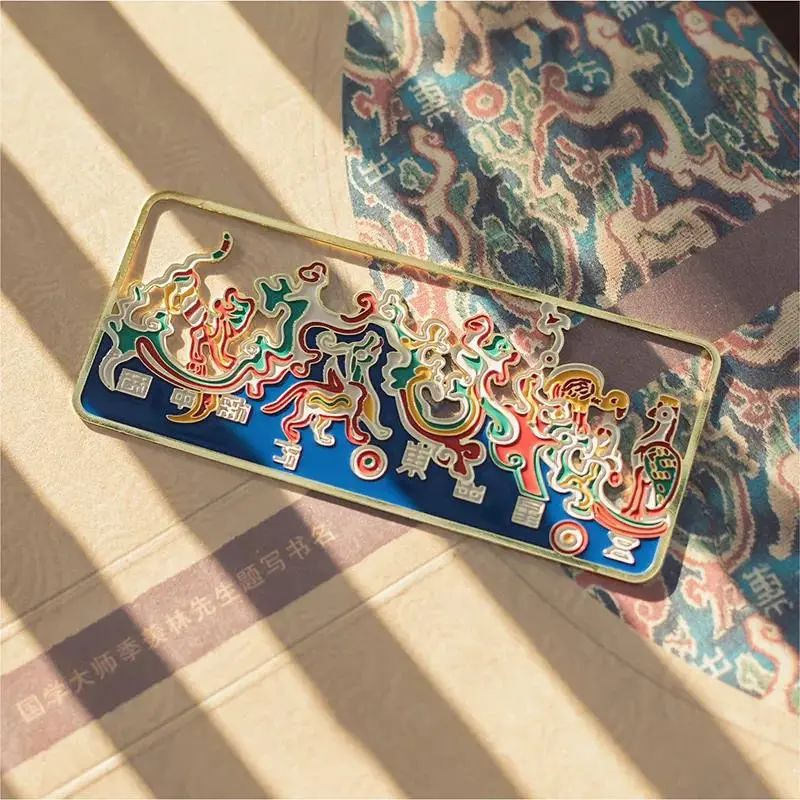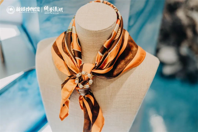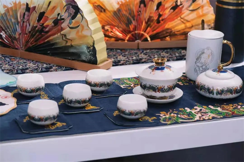 “五星出东方”系列文创以出土于和田地区民丰县尼雅遗址的“五星出东方利中国”汉代锦护臂为原型创作,用锦护臂上的祥禽瑞兽、云纹、圆形纹等设计了瓷器、丝织品等。
