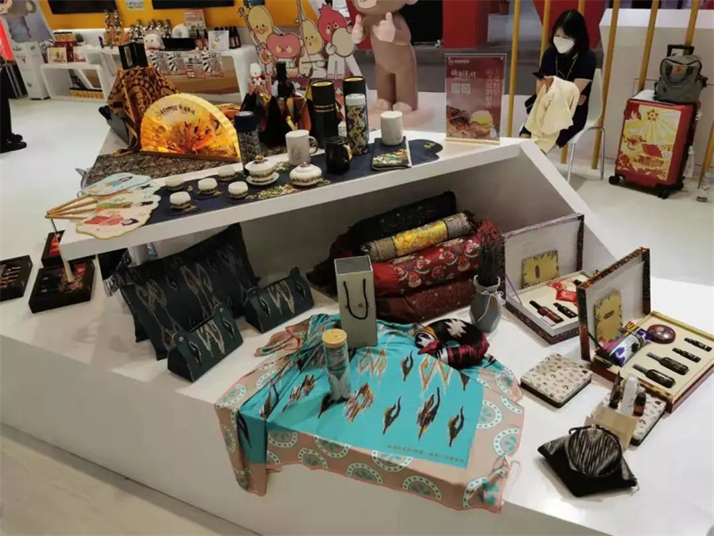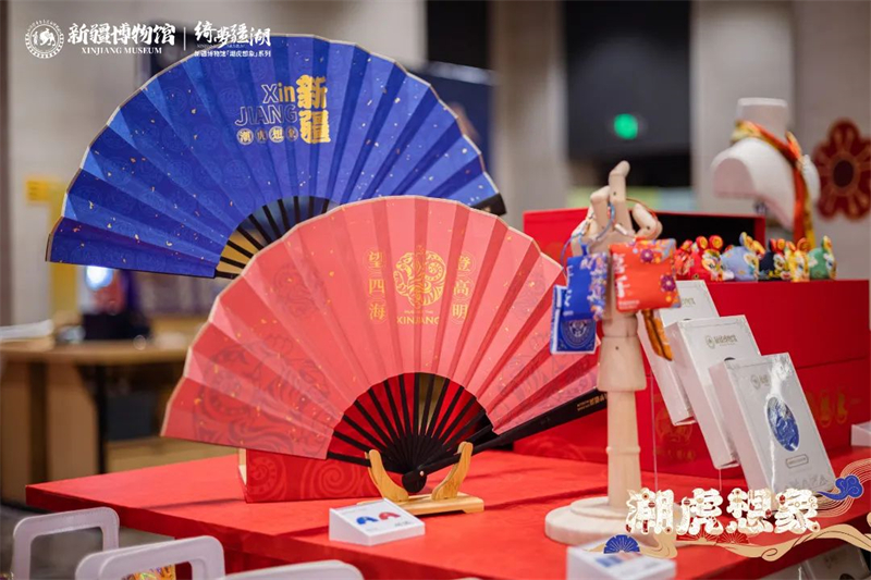 “潮虎想象”以新疆博物馆馆藏一级文物虎纹圆金牌为创作素材而设计,有折扇、红包套装、祈福香囊、新春福桶等60多件(套)产品。