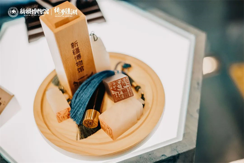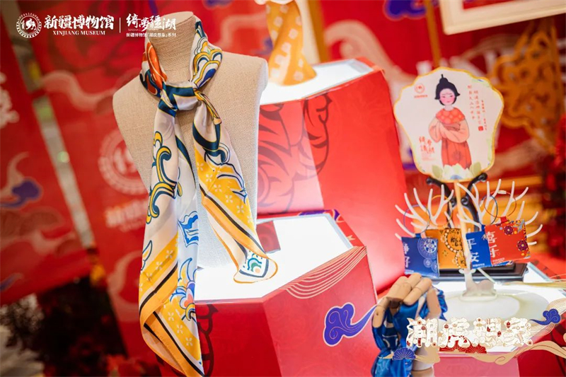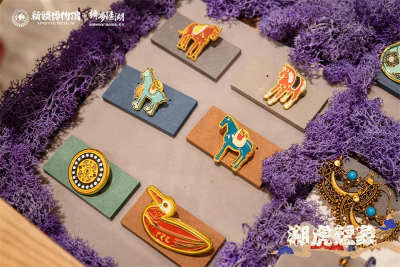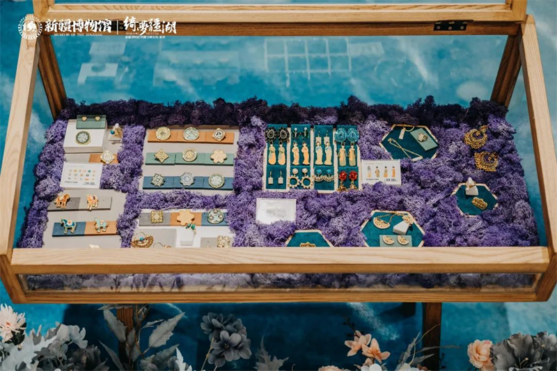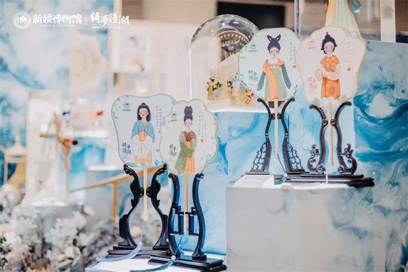 “绮梦疆湖”以新疆博物馆馆藏文物唐代仕女俑为原型,设计了4个分别代表喀纳斯湖、赛里木湖、天山天池、博斯腾湖的丝路宝藏女孩形象,包含80多件文创,将新疆的自然风光和历史人文融汇其中。