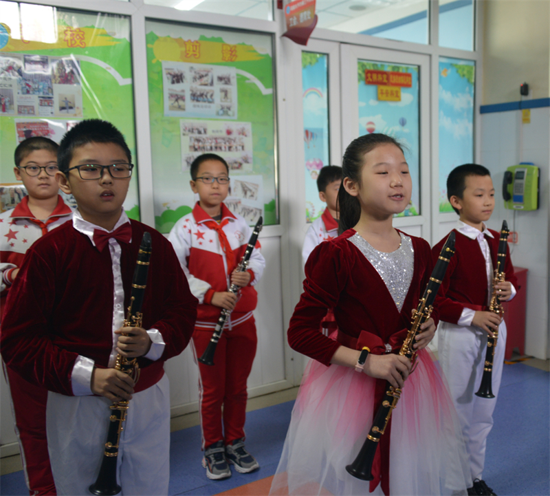 三十小红领巾管乐团演奏了《野马的故事》和《我的中国心》