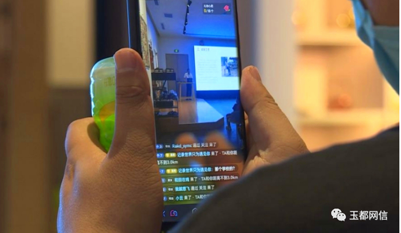 (网络人士一边对各展区进行直播,一边在评论区与广大粉丝互动。图片来源:和田地区融媒体中心)