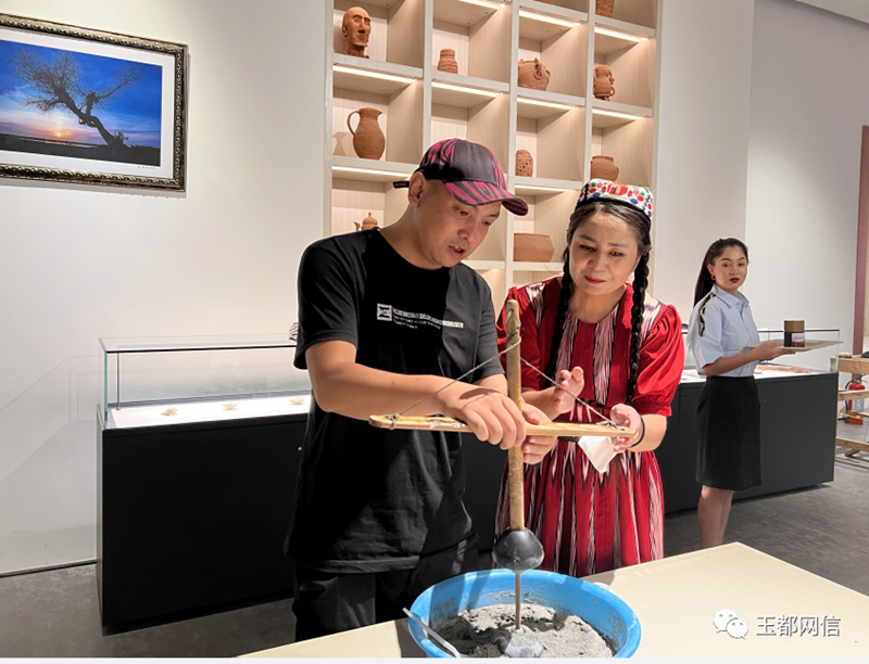 网络人士还参与了研学体验活动,现场体验石权仗头的制作,玉斧砍木头,制作桑皮纸,品尝维吾尔药茶……将历史文化、非遗文化和现实生活相结合,进一步弘扬和传承中华优秀传统文化,传播普及非遗文化和文物知识。
