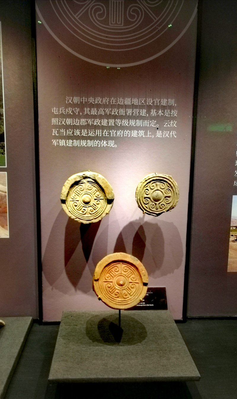 《新疆历史文物展》陈列的奇台石城子遗址出土的彩绘瓦当。石榴云/新疆日报记者 贾春霞摄