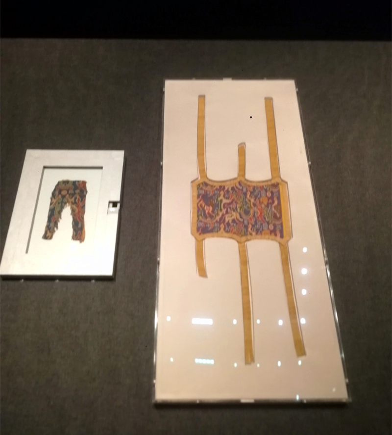 《新疆历史文物展》展出的“五星出东方利中国”锦护臂。石榴云/新疆日报记者 贾春霞摄