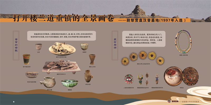 营盘汉晋墓地以15号墓为代表的遗存,汇聚了西域与中原以及中亚西亚等地不同的因素,展现出极为丰富的文化内涵,是丝绸之路文明交流互鉴的生动实例,对于研究中西文化交流史、丝路贸易交通、染织服饰以及大楼兰区域社会文化生活等都有着极为重要的学术价值。