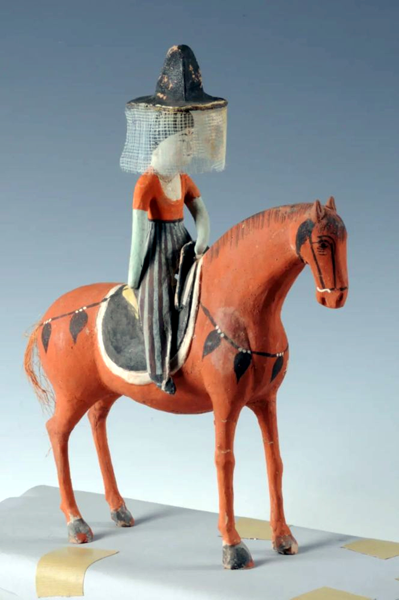唐代戴帷帽仕女骑马俑,吐鲁番市阿斯塔那墓葬出土