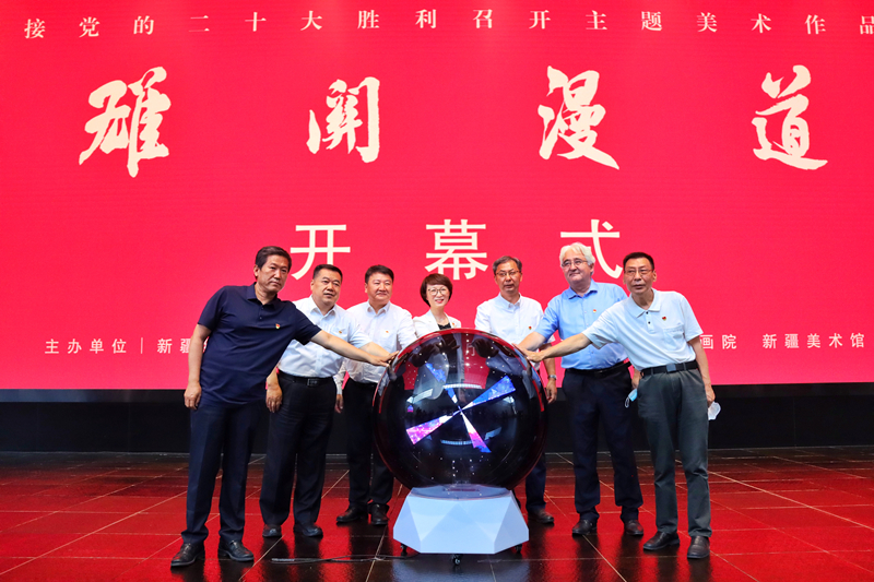 7月1日,由新疆维吾尔自治区文化和旅游厅主办,新疆画院、新疆美术馆承办的“雄关漫道——迎接党的二十大胜利召开主题美术作品展”在新疆美术馆开幕。