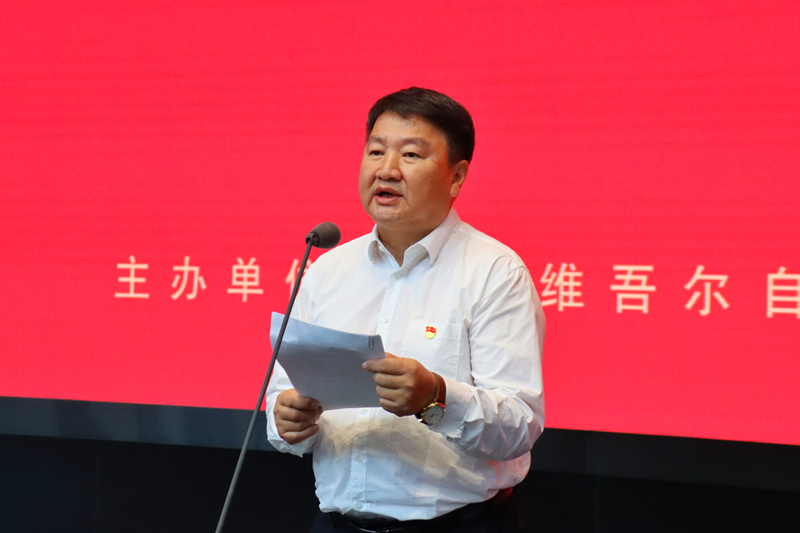 新疆维吾尔自治区文化和旅游厅党组书记、自治区文博院党组书记徐锐军致开幕词。新疆画院供图
