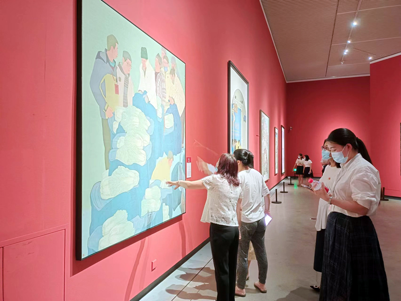 “雄关漫道——迎接党的二十大胜利召开主题美术作品展”参观现场。新疆画院供图