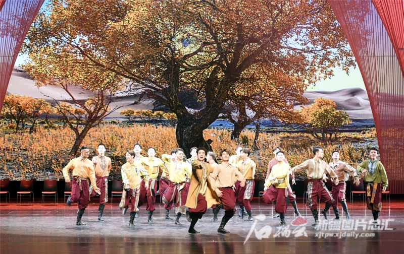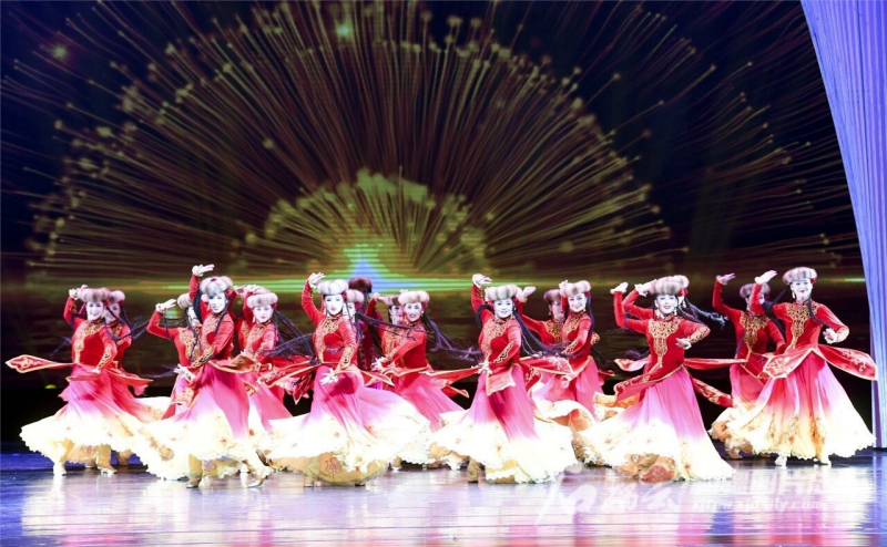 演员在表演舞蹈《阳光下的麦盖提》(7月31日摄)。石榴云/新疆日报记者 汤永摄