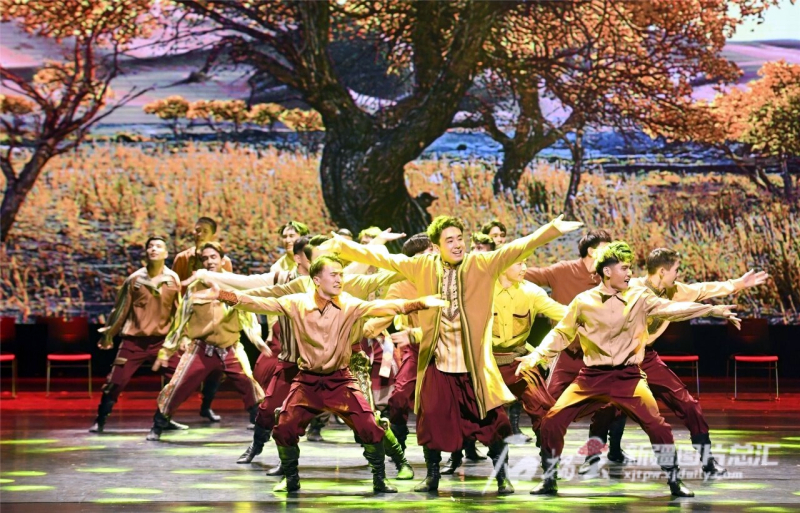 十二木卡姆余音未散,22位激情澎湃的小伙子又带来了第十三届中国舞蹈“荷花奖”民族民间舞金奖作品《阳光下的麦盖提》,这支舞蹈创作元素取自叶尔羌河畔代代流传的刀郎木卡姆,刚劲、雄浑的姿态,动感、飞扬的节奏,让观众席的掌声和赞叹不断。