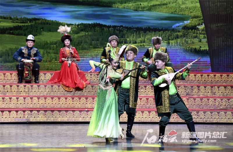 演员在表演民族新乐舞《草原回声》(7月31日摄)。石榴云/新疆日报记者 汤永摄